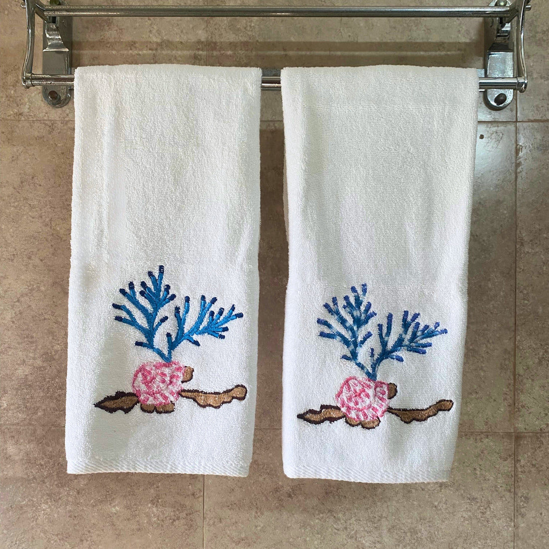 Coral Terry White Embroidered Towel Set
