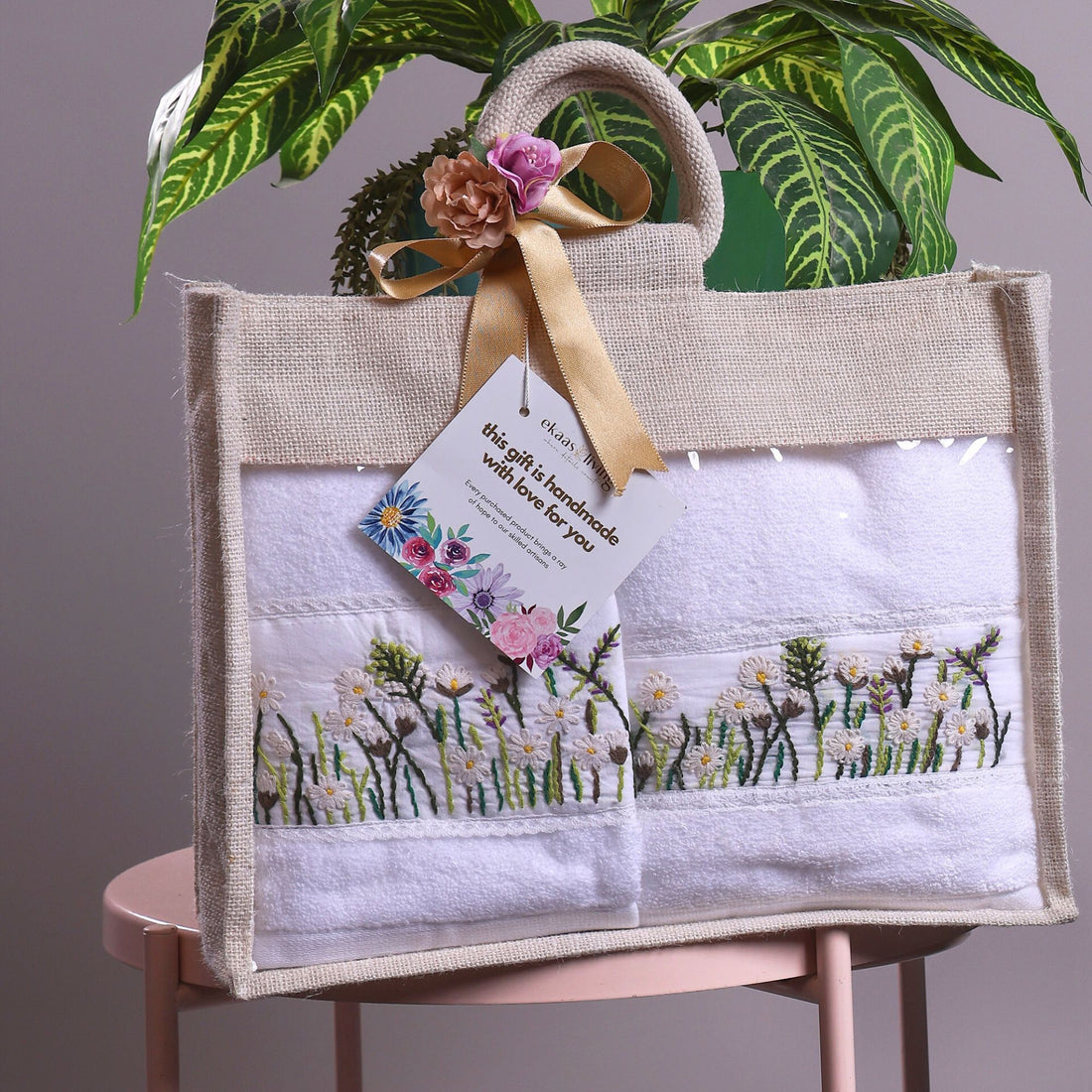 Applique Terry White Hand Embroidered Towel
