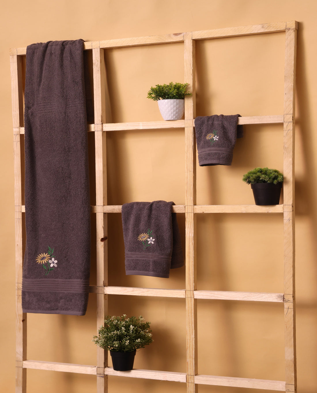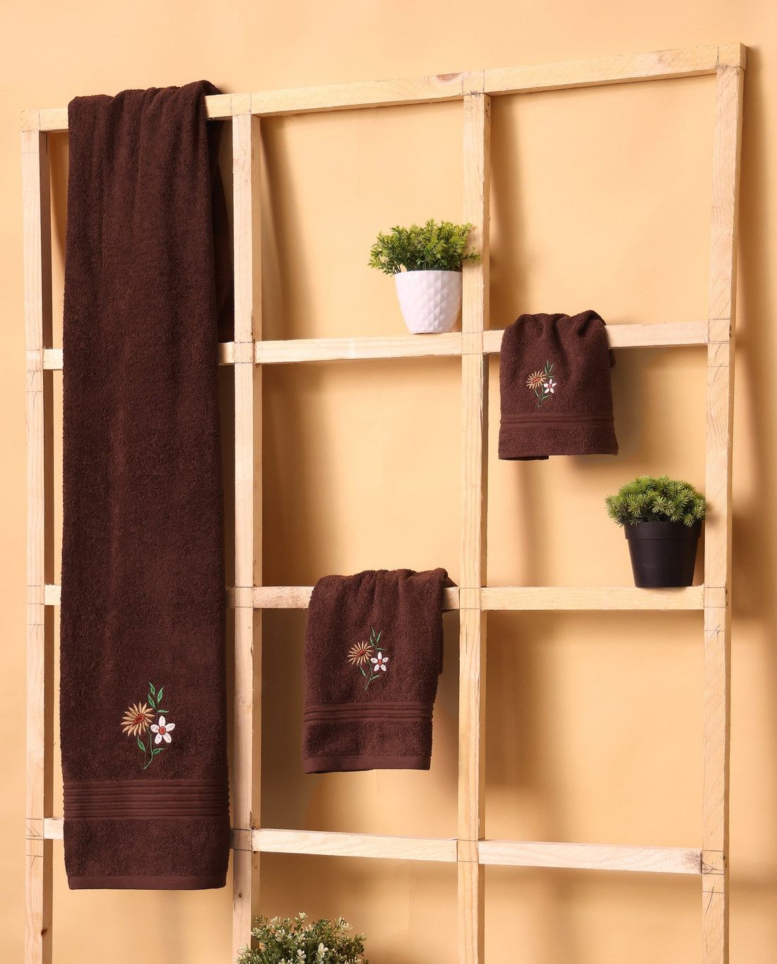 Faye Brown Embroidered Terry Towel Set