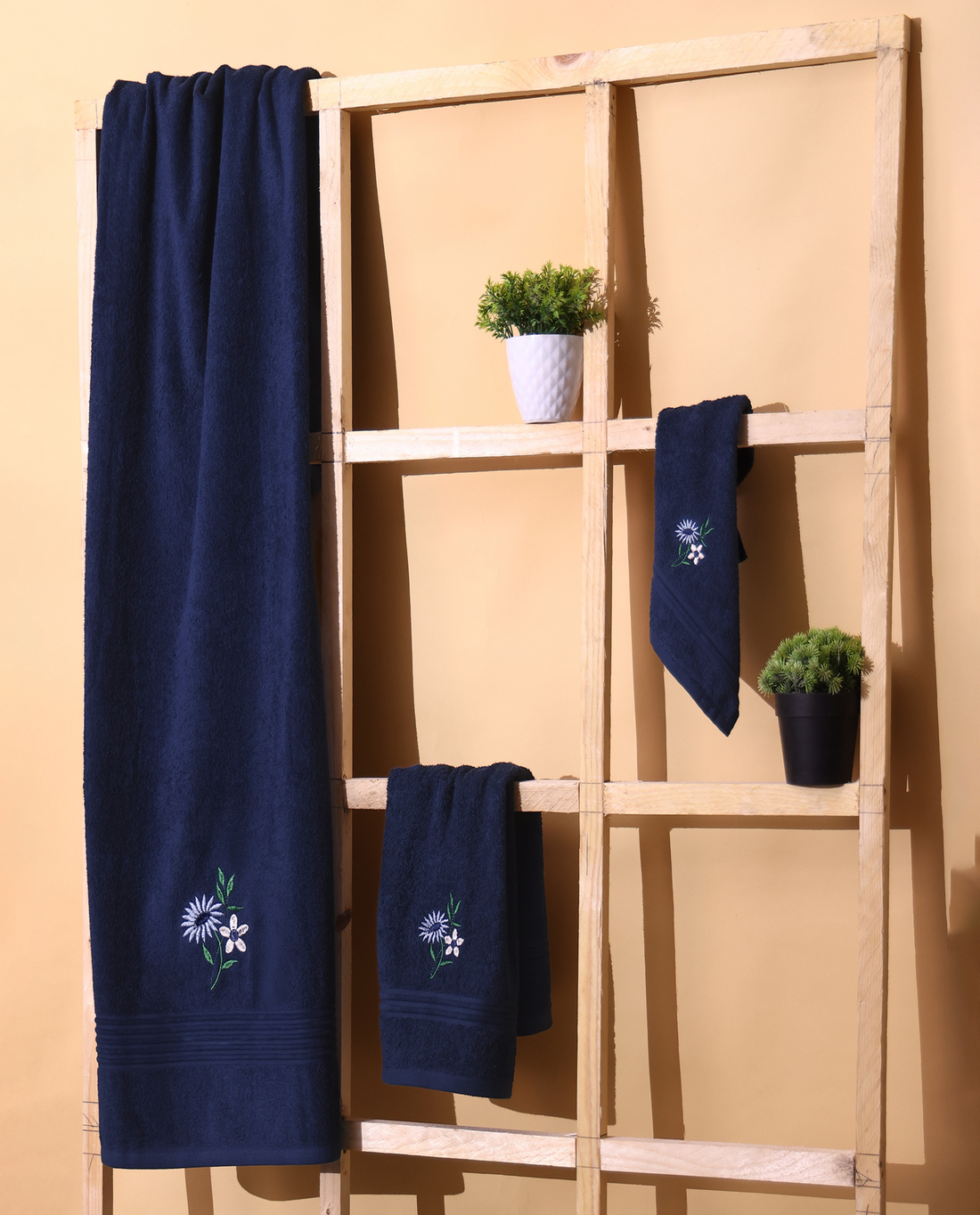 Faye Navy Embroidered Terry Towel Set