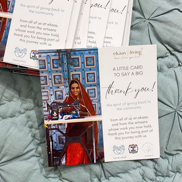 That journey led to Ekaas—born from a hope to uplift karigars and our customers. Every piece we create is a step toward preserving craftsmanship, offering quality, and bringing warmth into your life —without compromise."
