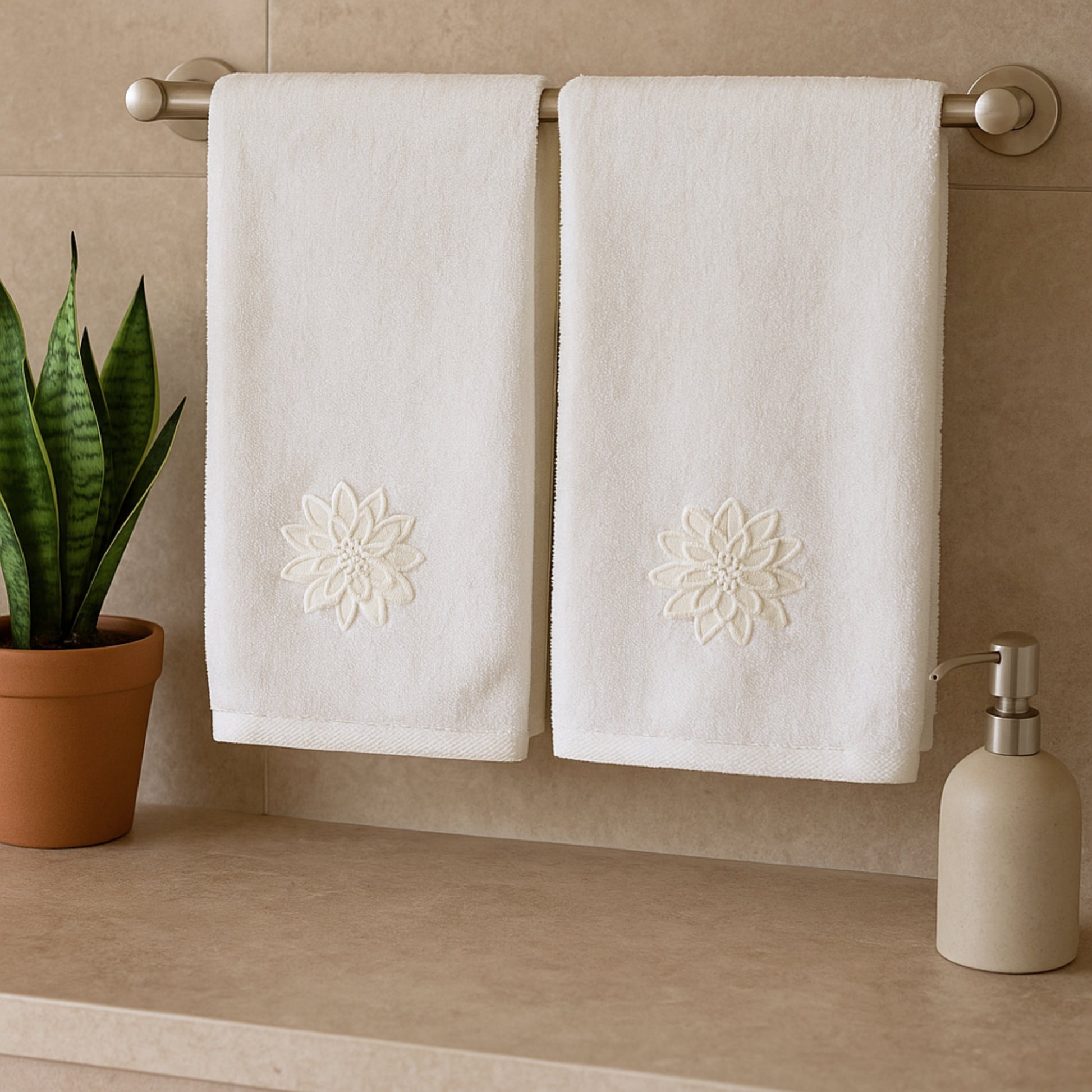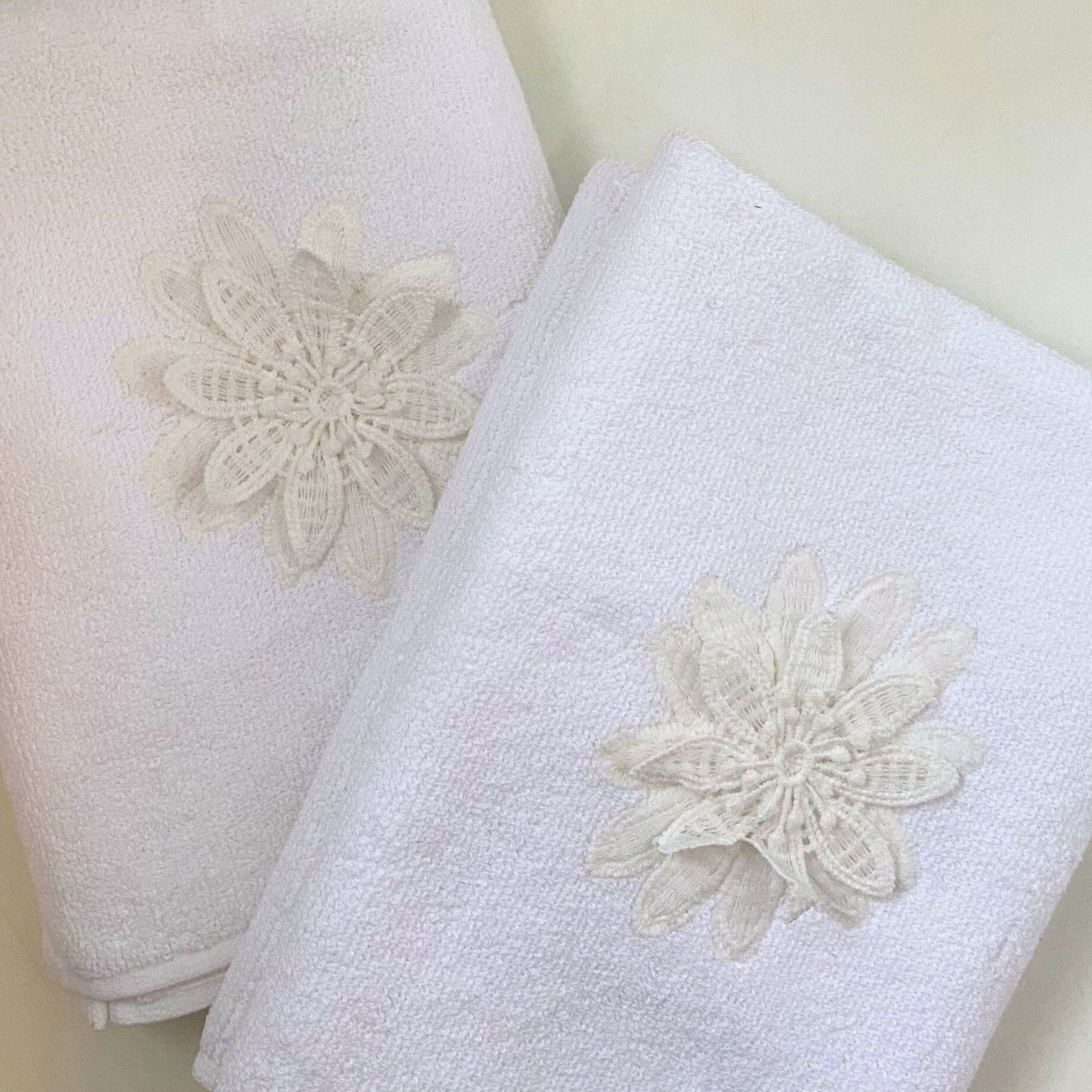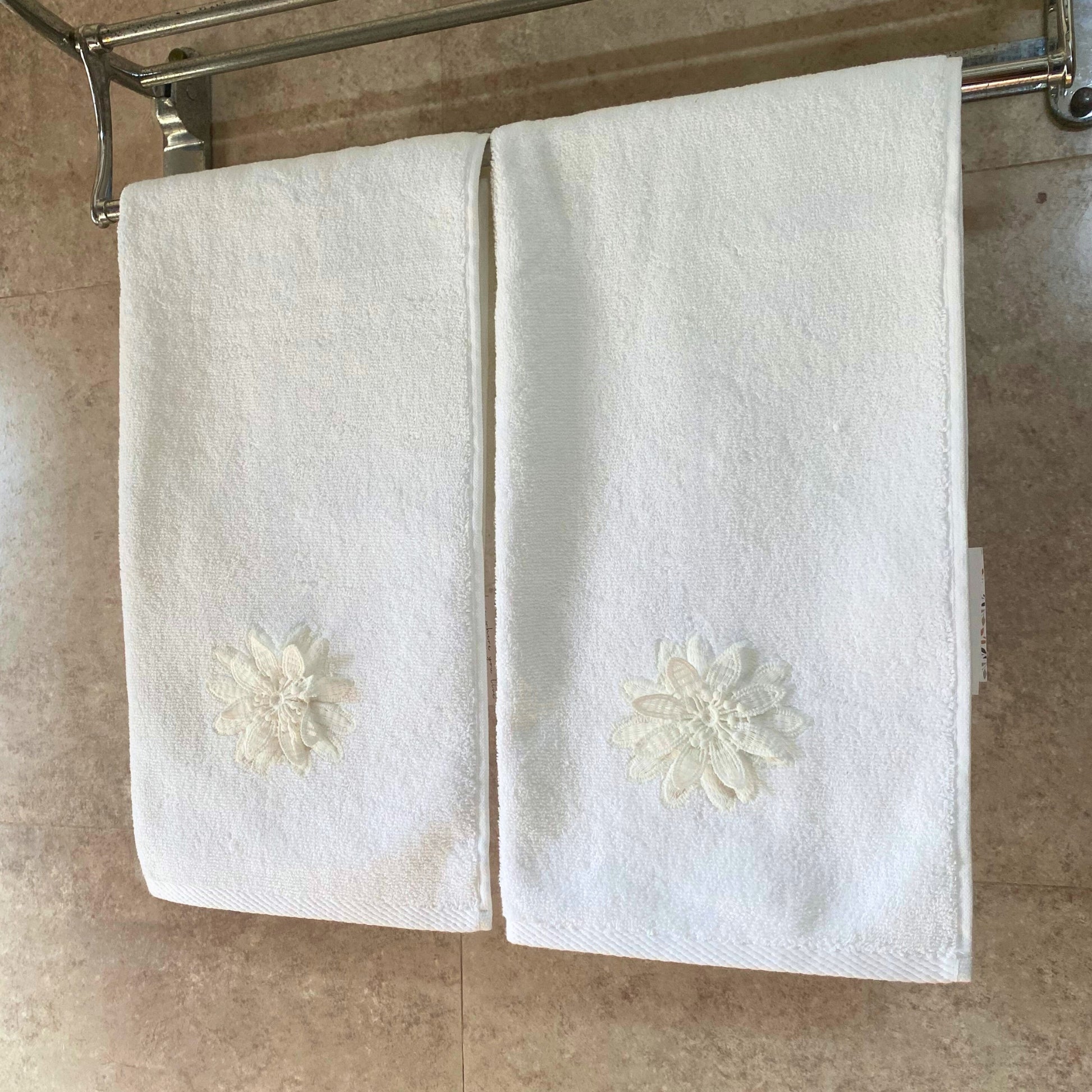 Applique Terry White Hand Embroidered Towel
